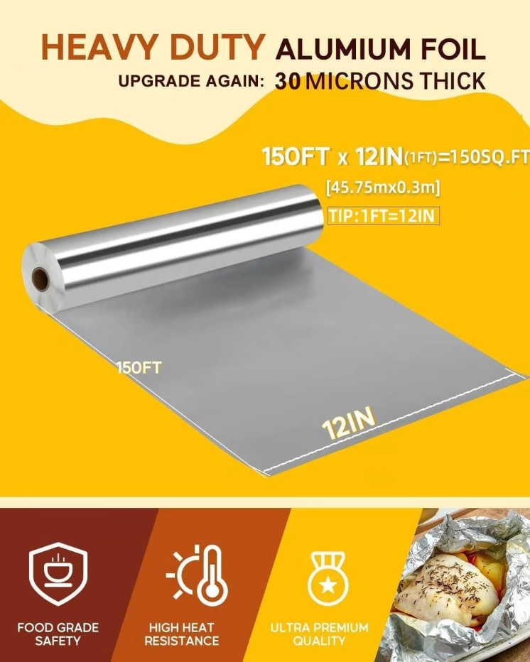 Real Heavy Duty - 25 microns thick foil aluminum roll is more sturdy and durable than common 20-22 microns tin foil and is less likely to tear or puncture. aluminum foil rolls are the perfect choice for heavy-duty purposes, such as covering large food storage containers or for grilling.