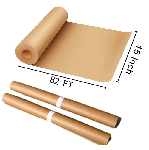 Parchment paper rolls are 15 in x 82 ft, 88 square feet in total. You can crop any size that you want by using a baking paper roll. healthy & non-toxic, parchment paper for baking made from natural 100% wood pulp and totally fluorescent-free without chemical composition. You can put your food on it without hesitation. It can be used to bake vegetables, bread and cookies.